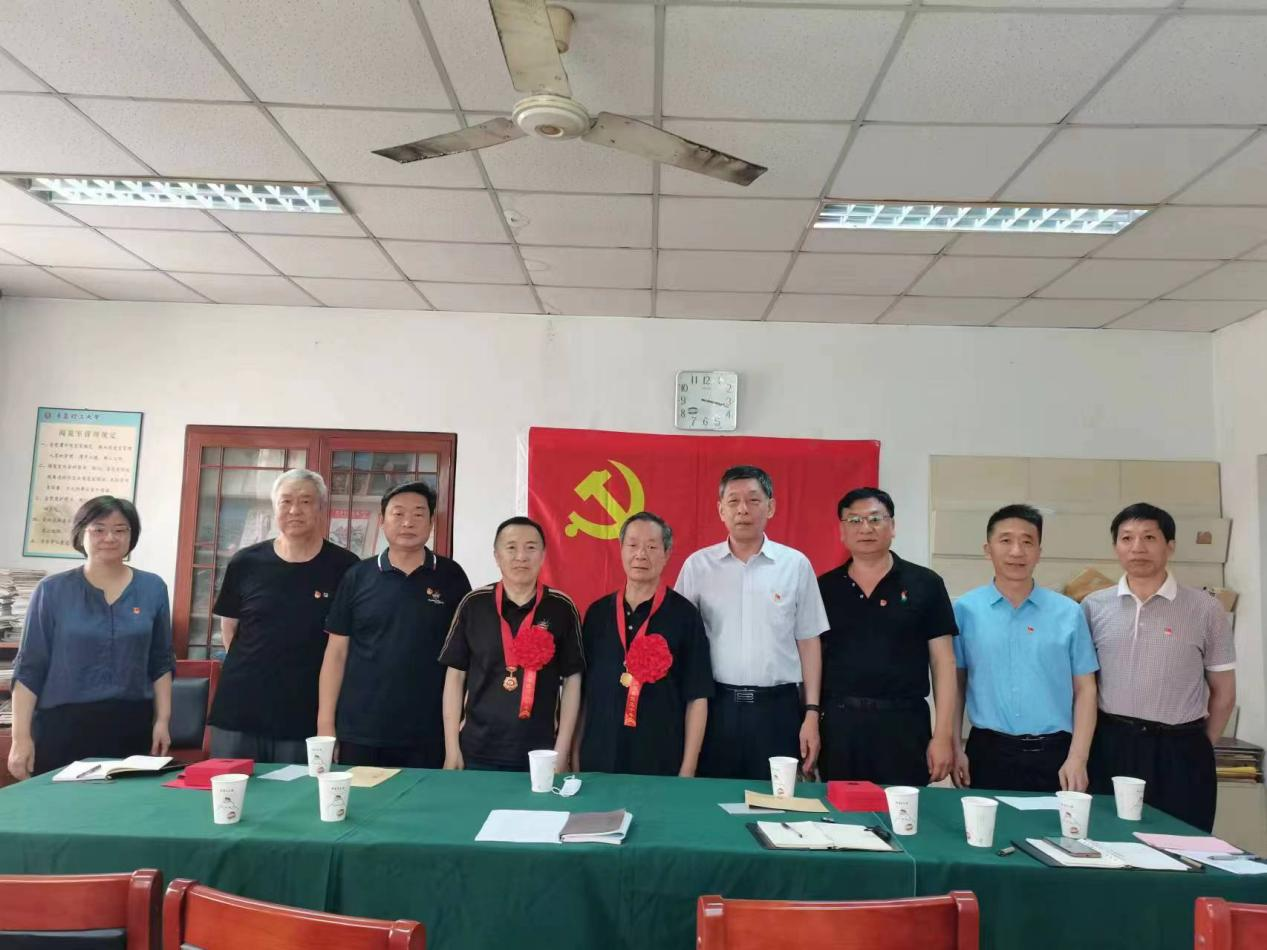 在深入开展学习贯彻习近平新时代中国特色社会主义思想主题教育和中国共产党建党102周年诞辰即将到来之际,6月30日下午,学校在市北校区老干部活动中心举行“光荣在党50年”纪念章集中颁发仪式并召开“初心使命永不变”座谈会。校党委副书记杨兴昌、yl23455永利集团领导班子成员、相关党支部书记及离退休工作处全体工作人员参加会议,会议由yl23455永利集团书记赵雷主持。
