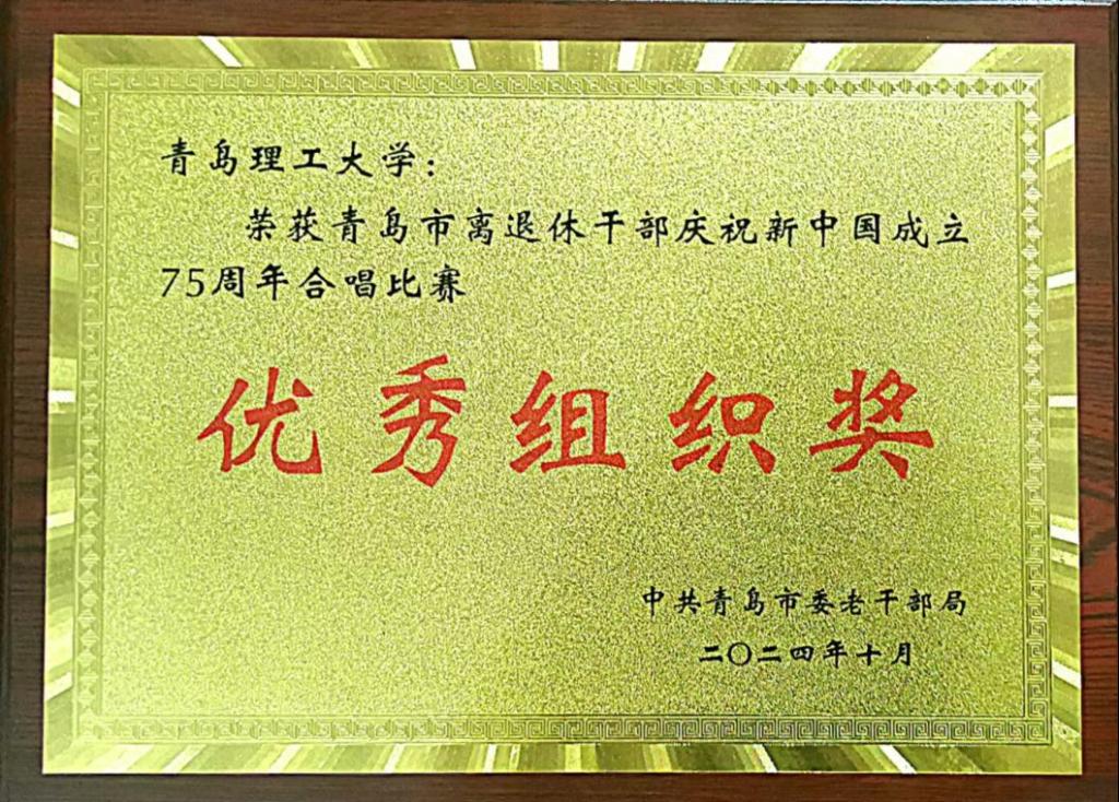近日,我校离退休干部“唱响新时代”合唱团在青岛市委老干部局举办的“青岛市离退休干部庆祝新中国成立75周年合唱比赛”中,所报送作品《不忘初心》、《南屏晚钟》荣获二等奖第一名。此次比赛入围获奖单位共18个,其中获奖高校3所。学校同时荣获优秀组织奖。