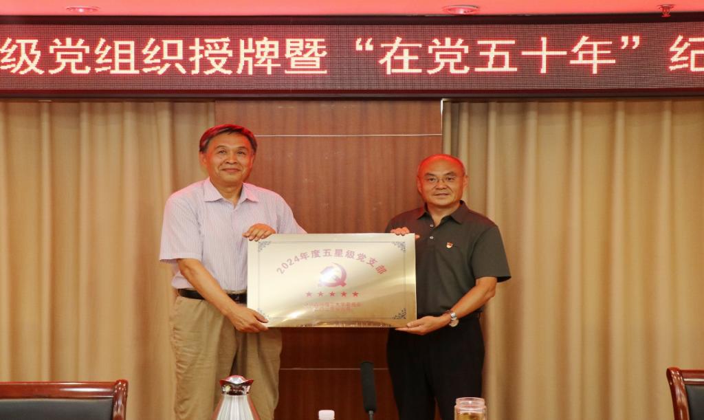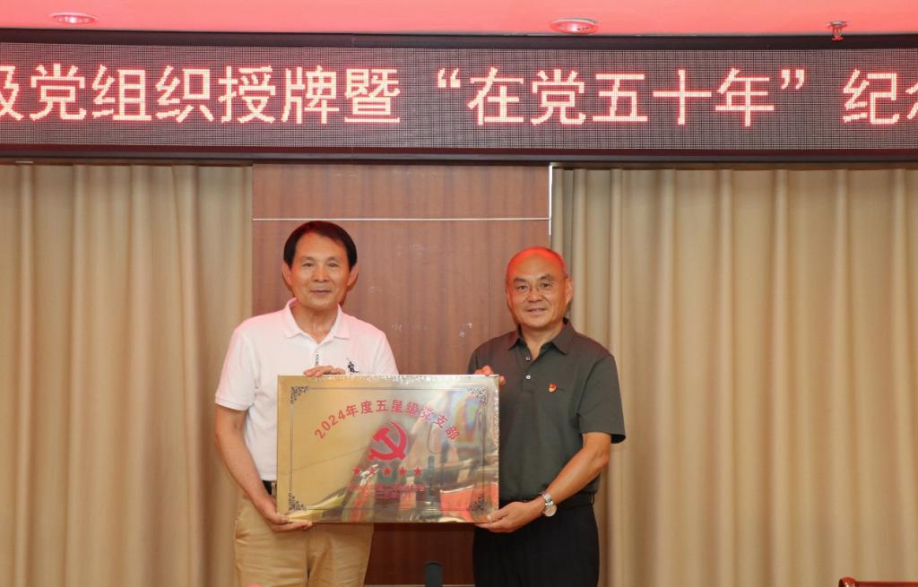 随后,李长河副书记为2024年度五星级党组织授牌。“光荣在党50年”纪念章颁发环节成为全场焦点,老党员们精神矍铄,在热烈的掌声中依次上台,接受纪念章。这些老党员们在不同历史时期,为国家建设、单位发展奉献了自己的青春和力量。他们中,有的曾在艰苦的科研一线攻坚克难,有的在平凡的岗位上默默耕耘数十载。一枚枚纪念章,不仅是对他们50年如一日坚守初心、忠诚于党的最高礼赞,更是对年轻一代党员的生动教育。