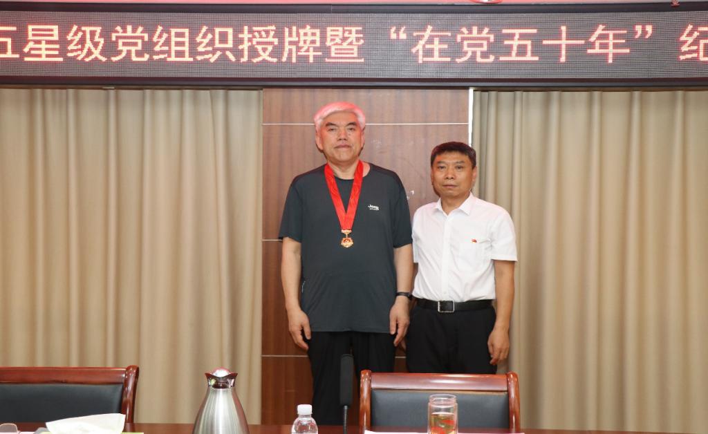 近日,yl23455永利集团举行了一场庄重而温馨的五星级党支部授牌仪式,同时为党龄达到50年的老党员颁发“光荣在党50年”纪念章,激励广大党员传承红色基因,赓续精神血脉。校党委副书记李长河、离退休工作处全体工作人员、yl23455永利集团委员、离退休支部书记、“在党五十年”纪念章获得者参加活动。会议由yl23455永利集团书记李洪民主持。