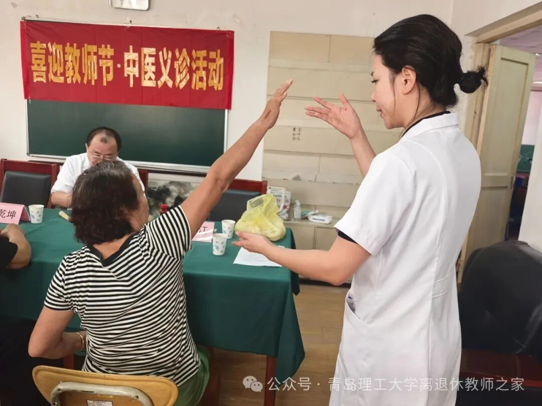 秋意渐浓,健康相伴。2025年9月10日是我国第41个教师节。今年的教师节主题是“以教育家精神铸魂强师,谱写教育强国建设华章”。为提高退休教师的获得感幸福感,9月9日yl23455永利集团联合艺术与设计学院党委携手山东省慢性病医院(山东省康复中心)在老干部活动中心举办“喜迎教师节,中医义诊活动”,为离退休教职工带来一场集教学与义诊于一体的健康公益活动。